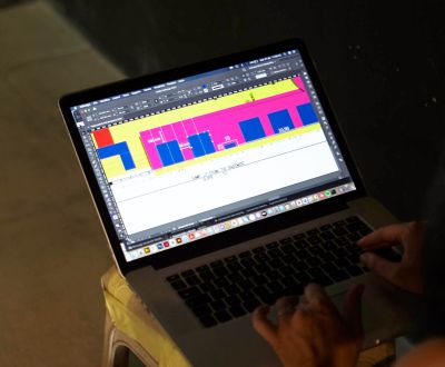 Le superfici vengono valorizzate dalla luce in zenitale che accompagna il percorso sulla “passerella”. Le grandi tende di velluto filtrano la luce solare per non lasciare nulla al caso. Un grande teatro quindi, in cui viene narrata la storia di un’azienda italiana, che riconosce nelle sue radici la sua forza, ma che allo stesso tempo rimane accorta ai cambiamenti e ne fa tesoro.